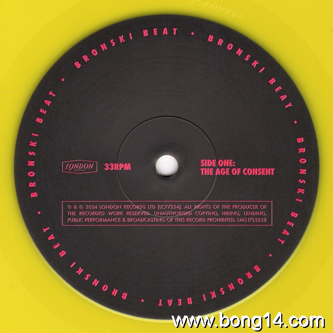 LP/645: Bronski Beat - The Age Of Consent (Yellow) - Grossbritannien - 2024 - London Records - LMS1725258 - 5061017252580Limited edition yellow vinyl with art print.      Matrixcode Seite 1: LMS1725203-A1 KTUFF MANMADEMatrixcode Seite 2: LMS1725203-B11: Why? - 00:002: It Ain't Necessarily So - 00:003: Screaming - 00:004: No More War - 00:005: Love And Money - 00:006: Smalltown Boy - 00:007: Heatwave - 00:008: Junk - 00:009: Need A Man Blues - 00:0010: I Feel Love / Johnny Remeber Me - 00:00 |