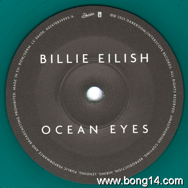 S/1094: Billie Eilish - Ocean Eyes (Turquoise) - EU - 2025 - Darkroom - 602478839993 - 602478839993Limited edition, single sided, Turqouise