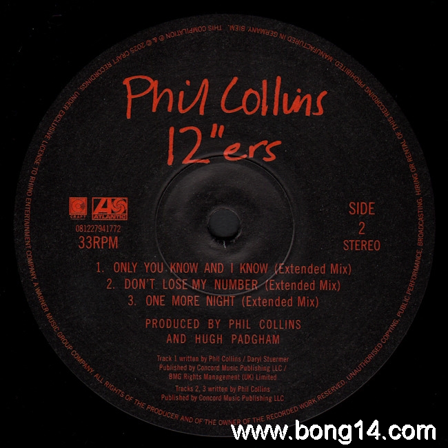LP/690: Phil Collins - 12"ers - EU - 2025 - Craft Recordings - 081227941772 - 081227941772      Matrixcode Seite 1: BP3506901 A1 0081227941772 MILES.ABBEY ROAD1/2 SPEED.ROOM30Matrixcode Seite 2: BP3506901 B1 0081227941772 MILES.ABBEY ROAD1/2 SPEED.ROOM301: Take Me Home (Special Extended Remix) - 08:052: Sussudio (Special Extended Remix) - 06:353: Who Said I Would (Special Extended Remix) - 05:514: Only You Know And I Know (Special Extended Remix) - 06:565: Don't Lose My Number (Special Extended Remix) - 06:366: One More Night (Extended Mix) - 06:24 |