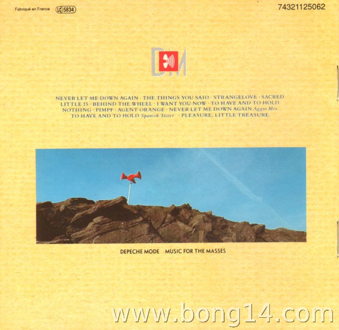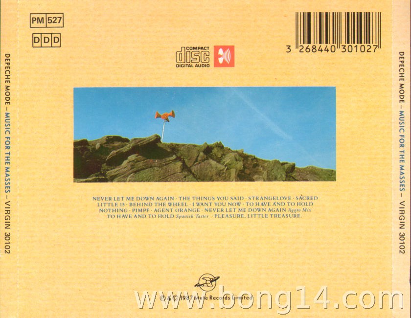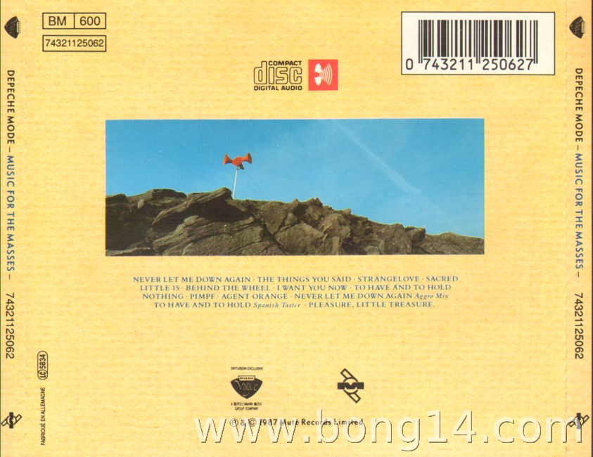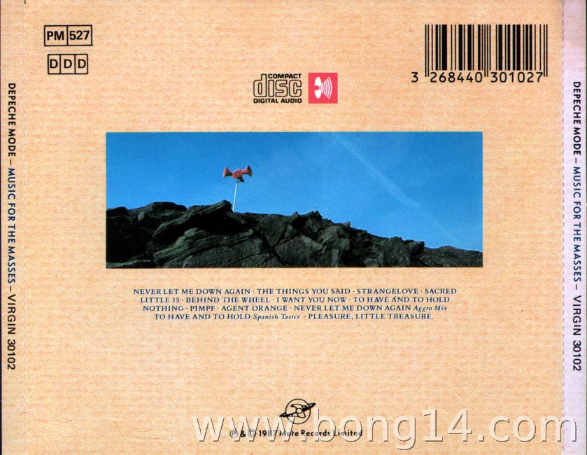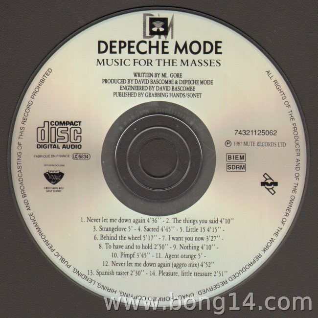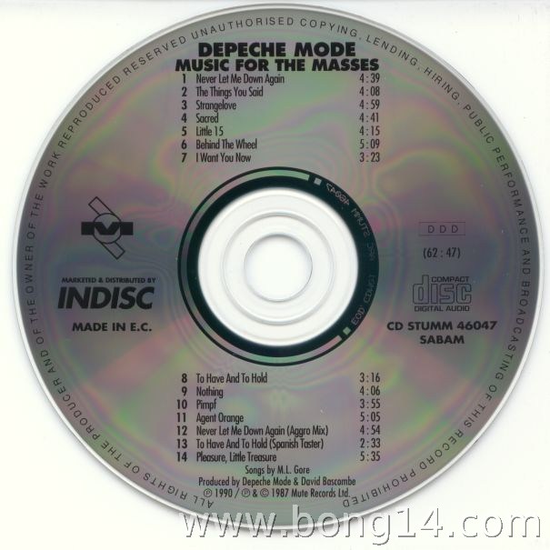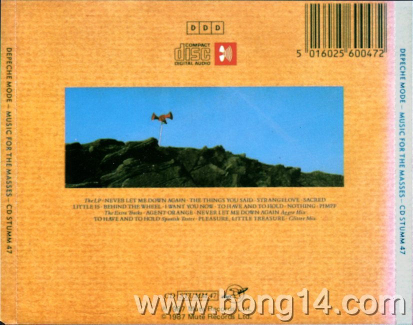 CD/995: Depeche Mode - Music For The Masses - Pacific - 1987 - Mute Records - CDSTUMM47 - 5016025600472Matrixcode CD: CDST-47 1A4 C 191: Never Let Me Down Again - 00:002: The Things You Said - 00:003: Strangelove - 00:004: Sacred - 00:005: Little 15 - 00:006: Behind The Wheel - 00:007: I Want You Now - 00:008: To Have And To Hold - 00:009: Nothing - 00:0010: Pimpf - 00:0011: Agent Orange - 00:0012: Never Let Me Down Again (Aggro Mix) - 00:0013: To Have And To Hold (Spanish Taster) - 00:0014: Pleasure, Little Treasure (Glitter Mix) - 00:00 |