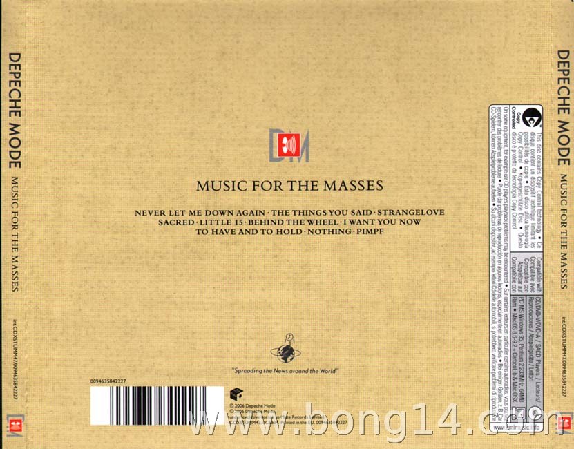 CD/494: Depeche Mode - Music For The Masses - EU - 2006 - Mute Records - CDXSTUMM47 - 0094635842425remasteredMatrixcode CD: www.mediamotion.com 3584242 @ 1 0101041: Never Let Me Down Again - 00:002: The Things You Said - 00:003: Strangelove - 00:004: Sacred - 00:005: Little 15 - 00:006: Behind The Wheel - 00:007: I Want You Now - 00:008: To Have And To Hold - 00:009: Nothing - 00:0010: Pimpf - 00:00 |