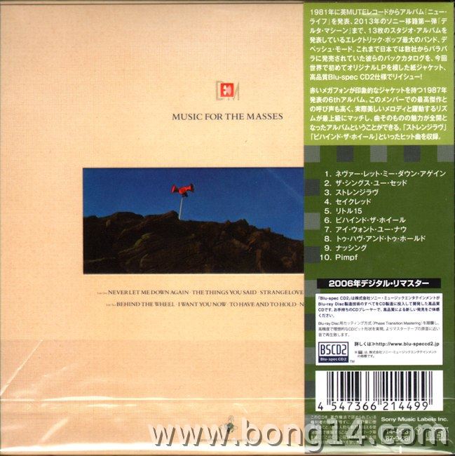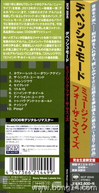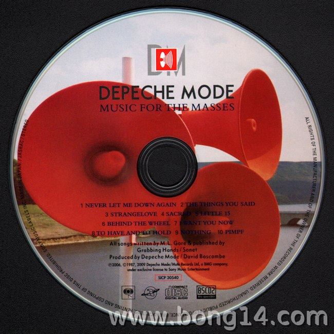 CD/940: Depeche Mode - Music For The Masses - Japan - 2014 - Sony Music Entertainment - SICP 30540 - 4547366214499Matrixcode CD: SICP-30540 11: Never Let Me Down Again - 00:002: The Things You Said - 00:003: Strangelove - 00:004: Sacred - 00:005: Little 15 - 00:006: Behind The Wheel - 00:007: I Want You Now - 00:008: To Have And To Hold - 00:009: Nothing - 00:0010: Pimpf - 00:00 |