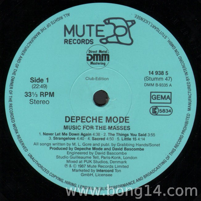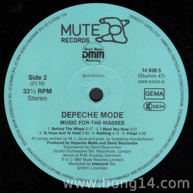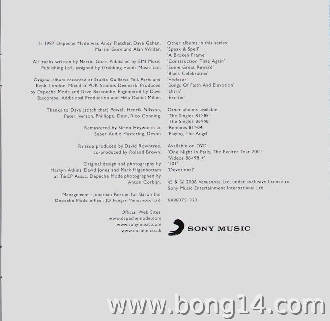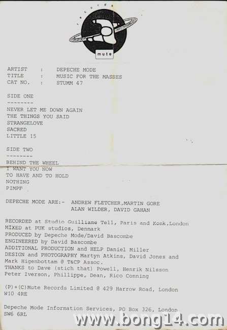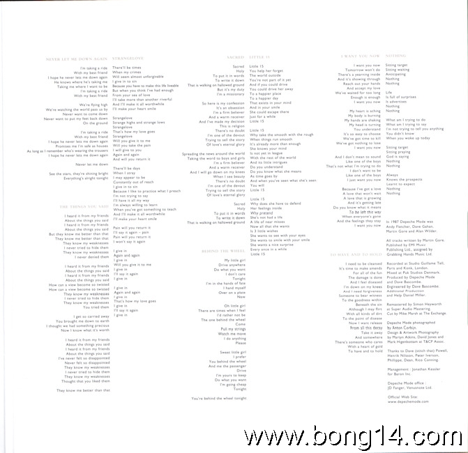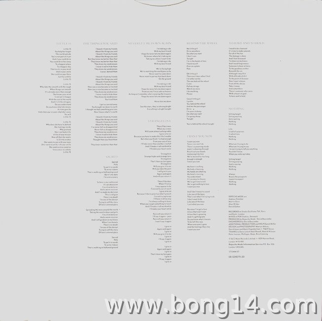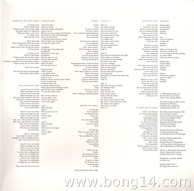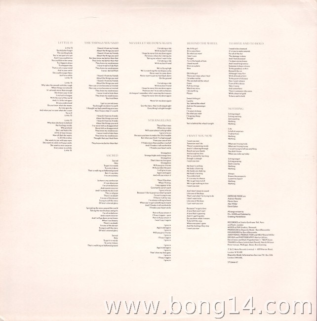 sleeve without speakerMatrixcode Seite 1: DMM B-9335 A-1/8-87 IIMatrixcode Seite 2: DMM B-9335 B-1/8-87 IV1: Never Let Me Down Again - 00:002: The Things You Said - 00:003: Strangelove - 00:004: Sacred - 00:005: Little 15 - 00:006: Behind The Wheel - 00:007: I Want You Now - 00:008: To Have And To Hold - 00:009: Nothing - 00:0010: Pimpf - 00:00 |