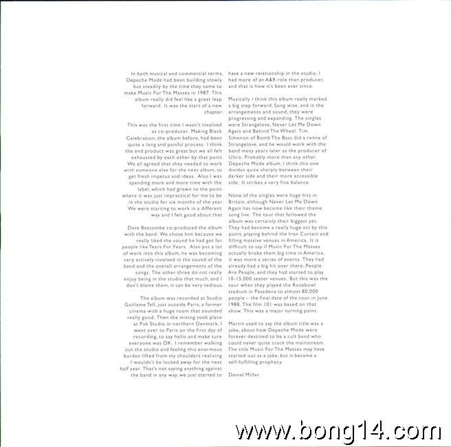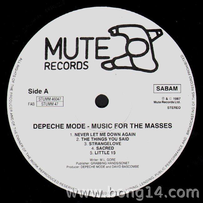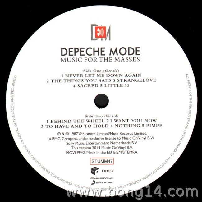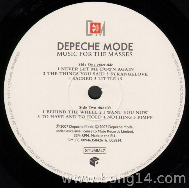 LP/277: Depeche Mode - Music For The Masses - EU - 2014 - Music On Vinyl - MOVLP942 - 8718469534319Matrixcode Seite 1: 66034(crossed) 1A 3584261(crossed) / DMLP 6(crossed) MIKE'S(TM)-THE EXCHANGE 07REMASTA 97335 IA MOVLP 942Matrixcode Seite 2: 66034(crossed) 1B 3584261(crossed) / DMLP 6(crossed) 97335 IB MOVLP 942 MIKE'S(TM)-THE EXCHANGE 07REMASTA1: Never Let Me Down Again - 00:002: The Things You Said - 00:003: Strangelove - 00:004: Sacred - 00:005: Little 15 - 00:006: Behind The Wheel - 00:007: I Want You Now - 00:008: To Have And To Hold - 00:009: Nothing - 00:0010: Pimpf - 00:00 |