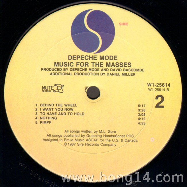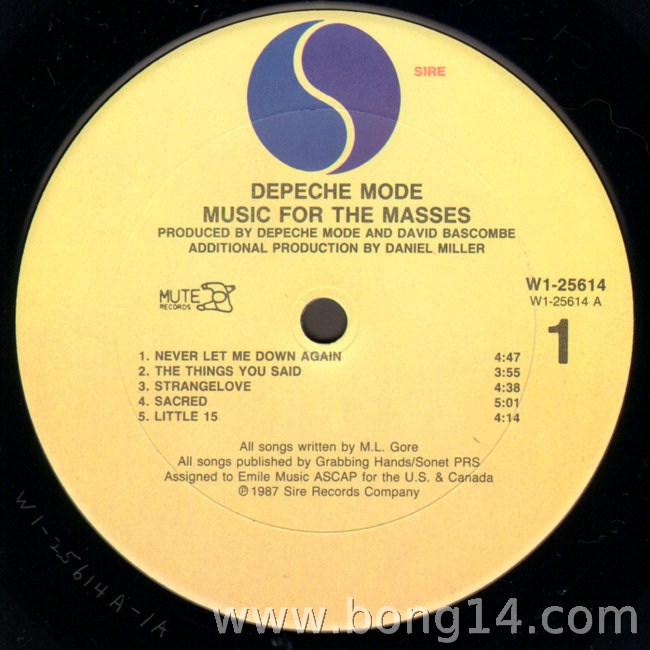 LP/221: Depeche Mode - Music For The Masses - USA - 1987 - Sire Records - W1-25614 - 075992561419Matrixcode Seite 1: W1-25614 A-/A G1 C1Matrixcode Seite 2: W1-25614 B-/A G1 B11: Never Let Me Down Again - 04:382: The Things You Said - 03:553: Strangelove - 04:404: Sacred - 04:505: Little 15 - 04:146: Behind The Wheel - 05:177: I Want You Now - 03:278: To Have And To Hold - 02:509: Nothing - 04:1210: Pimpf - 04:58 |