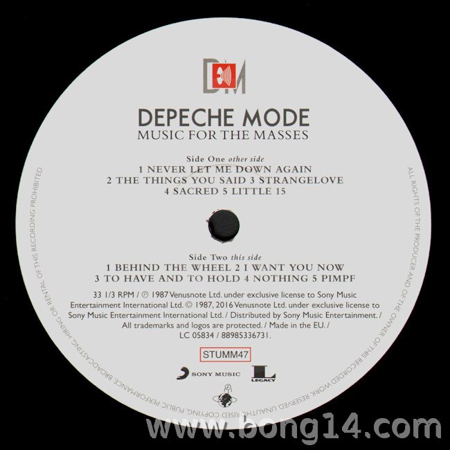 LP/344: Depeche Mode - Music For The Masses - EU - 2016 - Legacy Vinyl - STUMM47 - 889853367313Matrixcode Seite 1: 17294 1A 889853367313Matrixcode Seite 2: 17294 1B 8898533673131: Never Let Me Down Again - 00:002: The Things You Said - 00:003: Strangelove - 00:004: Sacred - 00:005: Little 15 - 00:006: Behind The Wheel - 00:007: I Want You Now - 00:008: To Have And To Hold - 00:009: Nothing - 00:0010: Pimpf - 00:00 |