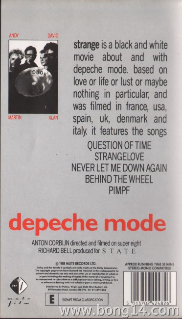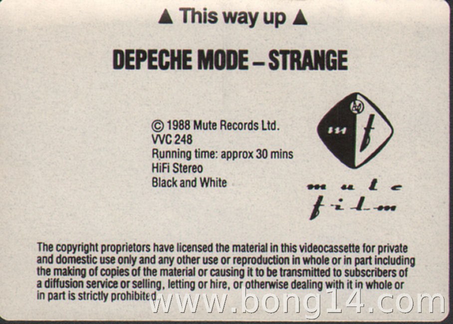VHS/2: Depeche Mode - Strange - Grossbritannien - 1988 - Mute Records - VVC 248 - 50137024248261: A Question Of Time (Video) - 00:002: Strangelove (Video) - 00:003: Never Let Me Down Again (Video) - 00:004: Behind The Wheel (Video) - 00:005: Pimpf (Video) - 00:00 |