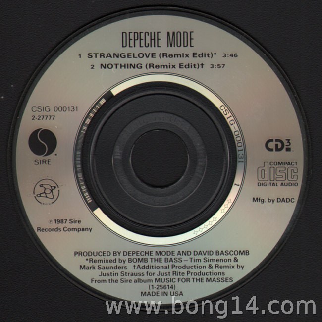 MCD/345: Depeche Mode - Strangelove '88 - USA - 1988 - Sire Records - 27777-2 - 075992777728Matrixcode CD: CSIG-000131 11: Strangelove (Remix/Edit) - 03:462: Nothing (Remix/Edit) - 03:57 |