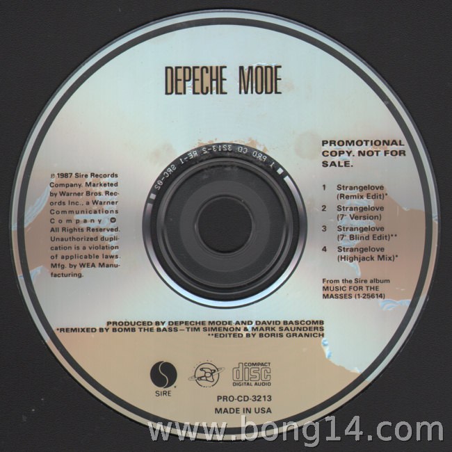 MCD/787: Depeche Mode - Strangelove '88 (Promo) - USA - 1988 - Sire Records - PRO-CD-3213 - -Matrixcode CD: 1 PRO CD 3213-2 RE-1 SRC-02 M1 S21: Strangelove (Remix Edit) - 03:462: Strangelove (Album Version - 7'' Edit) - 03:443: Strangelove (7'' Blind Edit) - 03:574: Strangelove (Highjack Mix) - 06:29 |