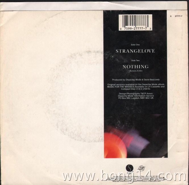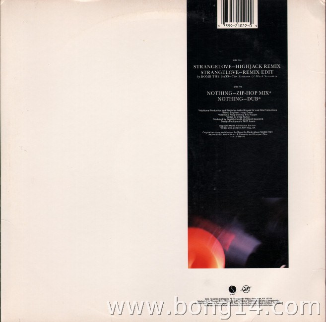MX/1062: Depeche Mode - Strangelove '88 - USA - 1988 - Sire Records - 21022-0 - 075992102209Matrixcode Seite 1: 0 21022 A SRI STERLINGMatrixcode Seite 2: 0 21022 B SRI STERLING | |1: Strangelove (Highjack Mix) - 00:002: Strangelove (Remix Edit) - 00:003: Nothing (Zip-Hop Mix) - 00:004: Nothing (Dub) - 00:00 |