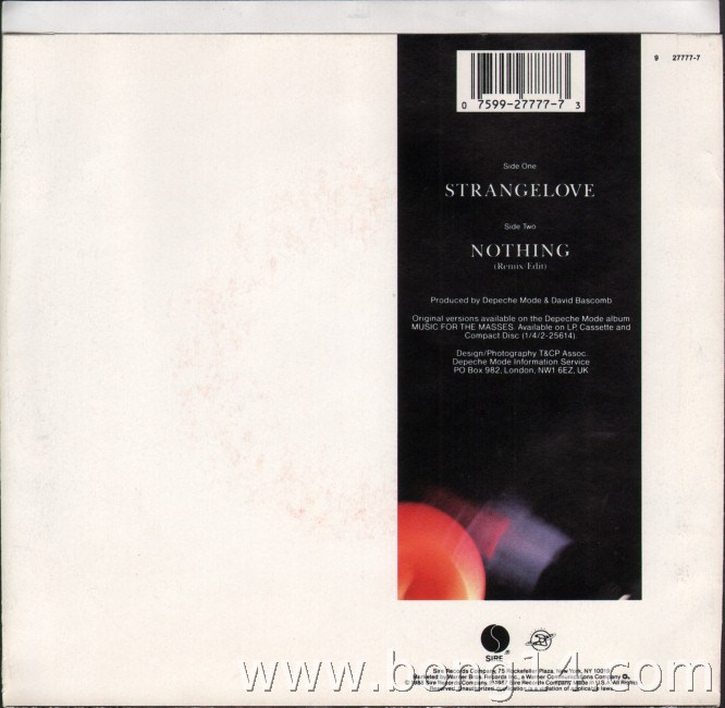 S/424: Depeche Mode - Strangelove '88 - USA - 1988 - Sire Records - 7-27777 - 075992777773with Promo stamp on label BMatrixcode Seite 2: 7-27777 B SR1 1-1Matrixcode Seite 1: 7-27777-RE1-A-SR1 1-11: Strangelove (Album Version - 7" Edit) - 03:442: Nothing (Remix Edit) - 03:57 |