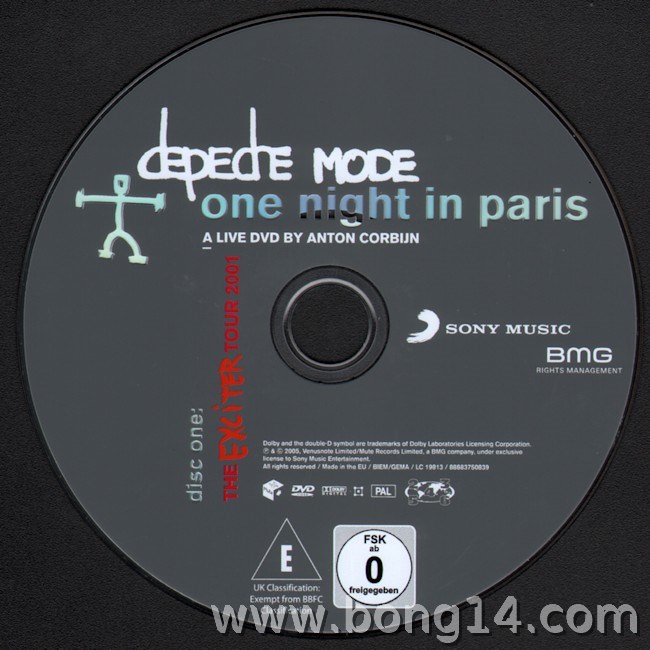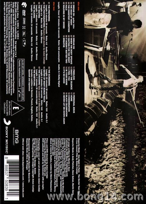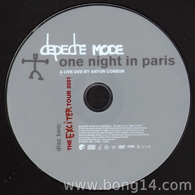 DVD/4: Depeche Mode - One Night In Paris - Deutschland - 2002 - Virgin Records - DVDSTUMM190 - 5016025011902Matrixcode DVD 1: EMI UDEN 2571190-1 PAL @ 1 IFPI L046Matrixcode DVD 2: EMI UDEN 2581190 PAL @ 1 IFPI L0461: Dream On - Guitar Intro (Live) (Video) - 00:002: The Dead Of Night (Live) (Video) - 00:003: The Sweetest Condition (Live) (Video) - 00:004: Halo (Live) (Video) - 00:005: Walking In My Shoes (Live) (Video) - 00:006: Dream On (Live) (Video) - 00:007: When The Body Speaks (Live) (Video) - 00:008: Waiting For Night (Live) (Video) - 00:009: It Doesn't Matter Two (Live) (Video) - 00:0010: Breathe (Live) (Video) - 00:0011: Freelove (Live) (Video) - 00:0012: Enjoy The Silence (Live) (Video) - 00:0013: I Feel You (Live) (Video) - 00:0014: In Your Room (Live) (Video) - 00:0015: It's No Good (Live) (Video) - 00:0016: Personal Jesus (Live) (Video) - 00:0017: Home (Live) (Video) - 00:0018: Condemnation (Live) (Video) - 00:0019: Black Celebration (Live) (Video) - 00:0020: Never Let Me Down Again (Live) (Video) - 00:0031: The Preparing (Video) - 00:0032: The Photographing (Video) - 00:0033: The Waiting (Video) - 00:0034: The Talking (Video) - 00:0035: The Screening (Video) - 00:0036: Sister Of Night (Live) (Video) - 00:0037: The Choosing (Video) - 00:0038: The Subtitling (Video) - 00:00 |