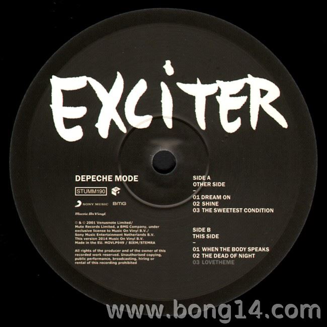 LP/295: Depeche Mode - Exciter - EU - 2014 - Music On Vinyl - MOVLP949 - 87184695343882LPMatrixcode Seite 1: MIKE'S THE EXCHANGE 07 REMASTA XXXXX 1A XXXXXXX X XXXXXXX 97342 1A MOVLP949Matrixcode Seite 2: XXXXX 1B XXXXXXX X XXXXXXX MIKE'S THE EXCHANGE 07 REMASTA 97342 1B MOVLP949Matrixcode Seite 3: MIKE'S THE EXCHANGE 07 REMASTA XXXXX 1C XXXXXXX X XXXXXXX 97342 C MOVLP949Matrixcode Seite 4: MIKE'S THE EXCHANGE 07 REMASTA XXXXX 1D XXXXXXX X XXXXXXX 97342 D MOVLP9491: Dream On - 00:002: Shine - 00:003: The Sweetest Condition - 00:004: When The Body Speaks - 00:005: The Dead Of Night - 00:006: Lovetheme - 00:007: Freelove - 00:008: Comatose - 00:009: I Feel Loved - 00:0010: Breathe - 00:0011: Easy Tiger - 00:0012: I Am You - 00:0013: Goodnight Lovers - 00:00 |