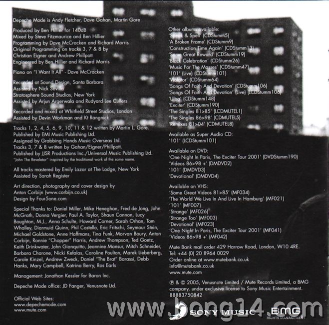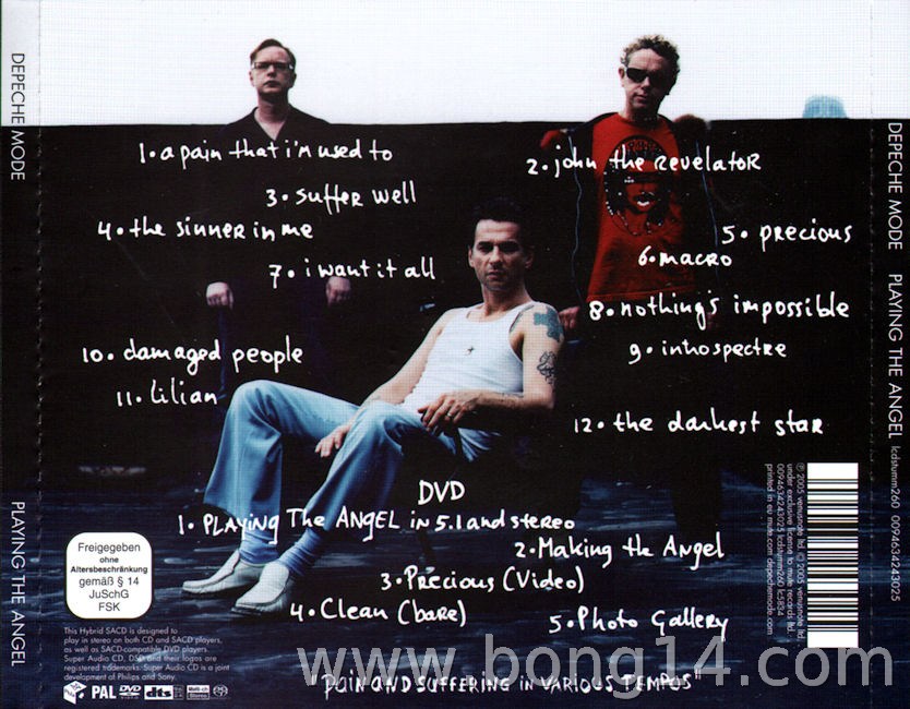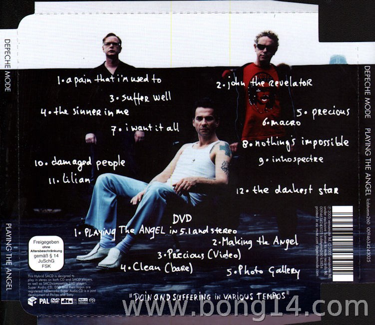 CD/378: Depeche Mode - Playing The Angel (Limited SACD+DVD) - EU - 2005 - Mute Records - LCDSTUMM260 - 00946342430252CD jewel caseMatrixcode SACD: 51669323/DJ3424312 D21 // 51669324/DJ3424312 21Matrixcode DVD: WWW.MEDIAMOTION.COM 3424309 PAL @ 3 010105-NL1: A Pain That I'm Used To - 00:002: John The Revelator - 00:003: Suffer Well - 00:004: The Sinner In Me - 00:005: Precious - 00:006: Macro - 00:007: I Want It All - 00:008: Nothing's Impossible - 00:009: Introspectre - 00:0010: Damaged People - 00:0011: Lilian - 00:0012: The Darkest Star - 00:0013: Playing The Angel in 5.1 - 00:0014: Making The Angel - 00:0015: Precious (Video) - 00:0016: Clean (Bare) - 00:0017: Photo Gallery - 00:00 |