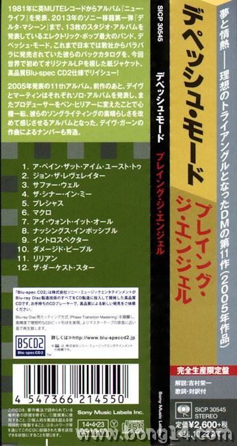 CD/945: Depeche Mode - Playing The Angel - Japan - 2014 - Sony Music Entertainment - SICP 30545 - 4547366214550Matrixcode CD: SICP-30545 11: A Pain That I'm Used To - 00:002: John The Revelator - 00:003: Suffer Well - 00:004: The Sinner In Me - 00:005: Precious - 00:006: Macro - 00:007: I Want It All - 00:008: Nothing's Impossible - 00:009: Introspectre - 00:0010: Damaged People - 00:0011: Lilian - 00:0012: The Darkest Star - 00:00 |