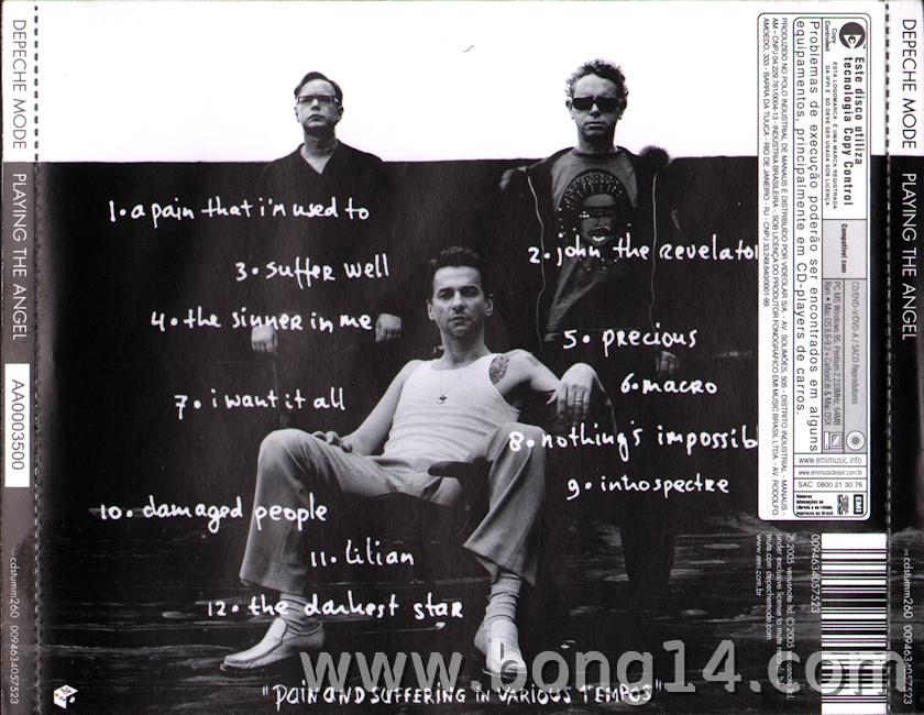 CD/377: Depeche Mode - Playing The Angel - EU - 2005 - Mute Records - intCDSTUMM260 - 0094634057523Matrixcode CD: WWW.MEDIAMOTION.COM 3405752 @ 1 010121-NL1: A Pain That I'm Used To - 00:002: John The Revelator - 00:003: Suffer Well - 00:004: The Sinner In Me - 00:005: Precious - 00:006: Macro - 00:007: I Want It All - 00:008: Nothing's Impossible - 00:009: Introspectre - 00:0010: Damaged People - 00:0011: Lilian - 00:0012: The Darkest Star - 00:00 |