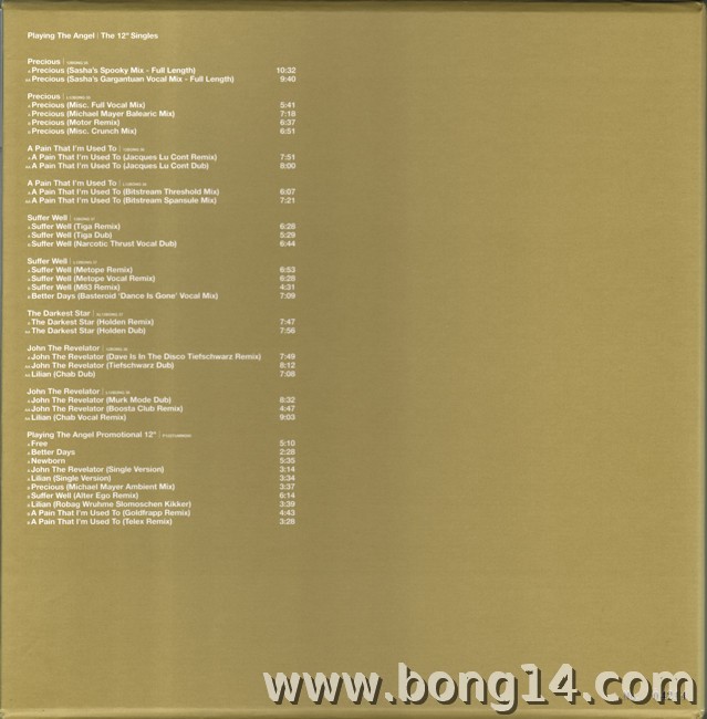 LP/149: Depeche Mode - Playing The Angel - EU - 2005 - Mute Records - STUMM260 - 0094634020114Matrixcode Seite 1: STUMM260 A 5 MPOMatrixcode Seite 2: STUMM260 B MPO 5Matrixcode Seite 3: STUMM260 C 4 MPOMatrixcode Seite 4: STUMM260 D 4 MPO1: A Pain That I'm Used To - 00:002: John The Revelator - 00:003: Suffer Well - 00:004: The Sinner In Me - 00:005: Precious - 00:006: Macro - 00:007: I Want It All - 00:008: Nothing's Impossible - 00:009: Introspectre - 00:0010: Damaged People - 00:0011: Lilian - 00:0012: The Darkest Star - 00:00 |