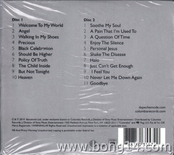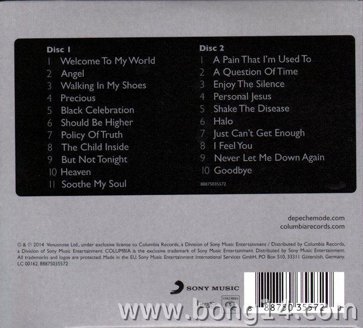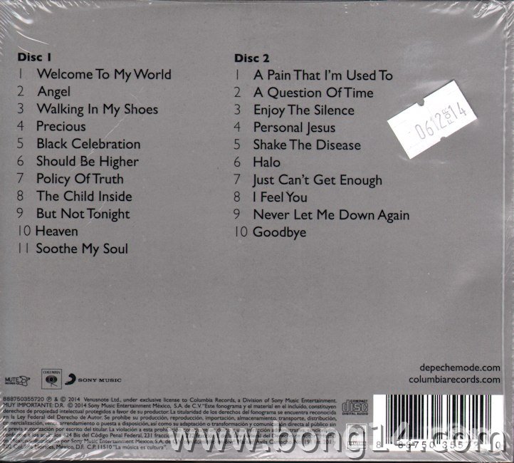 wrong tracklist1: Welcome To My World (CD1) - 00:002: Angel (CD1) - 00:003: Walking In My Shoes (CD1) - 00:004: Precious (CD1) - 00:005: Black Celebration (CD1) - 00:006: Should Be Higher (CD1) - 00:007: Policy Of Truth (CD1) - 00:008: The Child Inside (CD1) - 00:009: But Not Tonight (CD1) - 00:0010: Heaven (CD1) - 00:0011: Soothe My Soul (CD1) - 00:0012: A Pain That I'm Used To (CD2) - 00:0013: A Question Of Time (CD2) - 00:0014: Enjoy The Silence (CD2) - 00:0015: Personal Jesus (CD2) - 00:0016: Shake The Disease (CD2) - 00:0017: Halo (CD2) - 00:0018: Just Can't Get Enough (CD2) - 00:0019: I Feel You (CD2) - 00:0020: Never Let Me Down Again (CD2) - 00:0021: Goodbye (CD2) - 00:00 |