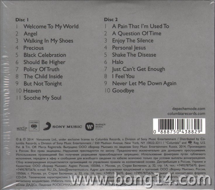 CD/971: Depeche Mode - Live in Berlin - Soundtrack - Russland - 2014 - Columbia - 88875043882 - 08887504388291: Welcome To My World (CD1) - 00:002: Angel (CD1) - 00:003: Walking In My Shoes (CD1) - 00:004: Precious (CD1) - 00:005: Black Celebration (CD1) - 00:006: Should Be Higher (CD1) - 00:007: Policy Of Truth (CD1) - 00:008: The Child Inside (CD1) - 00:009: But Not Tonight (CD1) - 00:0010: Heaven (CD1) - 00:0011: Soothe My Soul (CD1) - 00:0012: A Pain That I'm Used To (CD2) - 00:0013: A Question Of Time (CD2) - 00:0014: Enjoy The Silence (CD2) - 00:0015: Personal Jesus (CD2) - 00:0016: Shake The Disease (CD2) - 00:0017: Halo (CD2) - 00:0018: Just Can't Get Enough (CD2) - 00:0019: I Feel You (CD2) - 00:0020: Never Let Me Down Again (CD2) - 00:0021: Goodbye (CD2) - 00:00 |