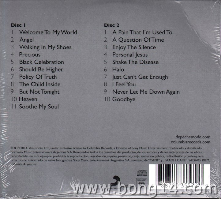 CD/974: Depeche Mode - Live in Berlin - Soundtrack - Mexiko - 2014 - Columbia - 888750355720 - 888750355720sealed1: Welcome To My World (CD1) - 00:002: Angel (CD1) - 00:003: Walking In My Shoes (CD1) - 00:004: Precious (CD1) - 00:005: Black Celebration (CD1) - 00:006: Should Be Higher (CD1) - 00:007: Policy Of Truth (CD1) - 00:008: The Child Inside (CD1) - 00:009: But Not Tonight (CD1) - 00:0010: Heaven (CD1) - 00:0011: Soothe My Soul (CD1) - 00:0012: A Pain That I'm Used To (CD2) - 00:0013: A Question Of Time (CD2) - 00:0014: Enjoy The Silence (CD2) - 00:0015: Personal Jesus (CD2) - 00:0016: Shake The Disease (CD2) - 00:0017: Halo (CD2) - 00:0018: Just Can't Get Enough (CD2) - 00:0019: I Feel You (CD2) - 00:0020: Never Let Me Down Again (CD2) - 00:0021: Goodbye (CD2) - 00:00 |