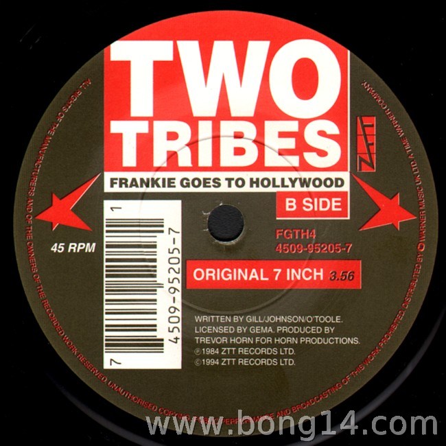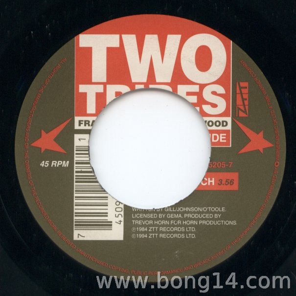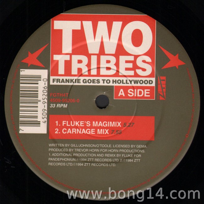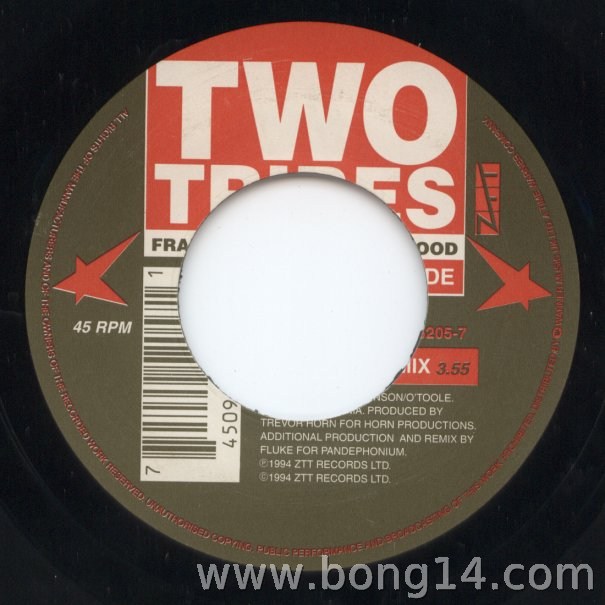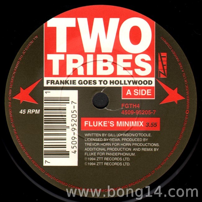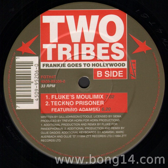 S/296: Frankie Goes To Hollywood - Two Tribes '94 - Grossbritannien - 1994 - ZTT Records - FGTH4 - 745099520571large center holeMatrixcode Seite 1: FGTH-4 A1 DAMONTMatrixcode Seite 2: FGTH-4 B1 DAMONT1: Two Tribes (Fluke's Minimix) - 03:552: Two Tribes (Original 7'') - 03:56 |